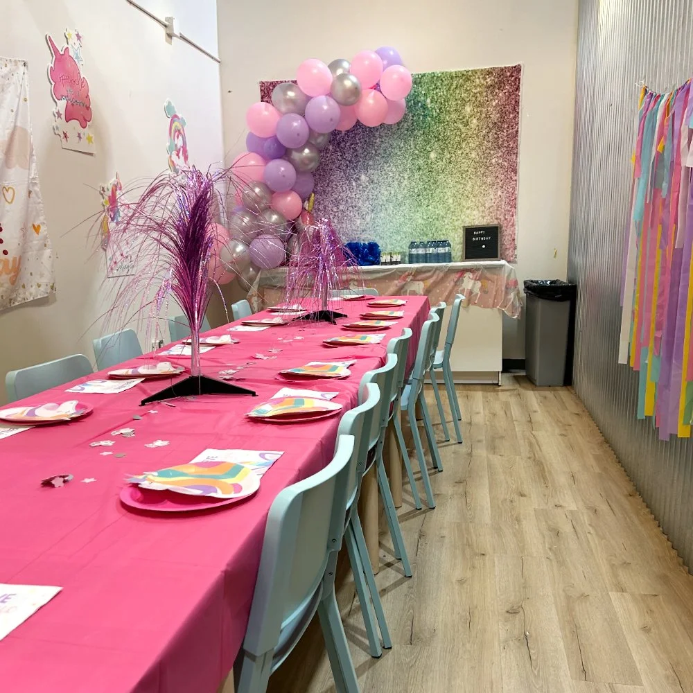 Or….We have great news for all you DIY lovers. We have a new room rental option! $100 an hour for the private room, regular admission for the kids, bring in all your own decor and food.